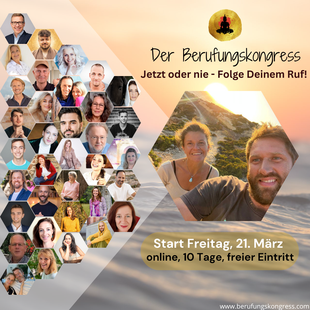 Melde dich gleich hier kostenfrei beim Berufungs-Online-Kongress vom Freitag, 21. März bis zum Sonntag, 30. März 2025 an und gestalte den Wandel der Erde aktiv mit, indem DU endlich deine Berufung lebst: